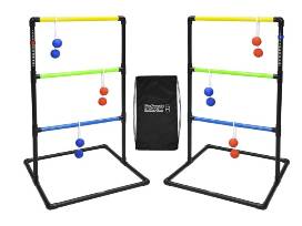GoSports pro grade ladder too indoor/outdoor game set with 6 soft rubber bolo balls, travel carrying case, and score tracker in black.