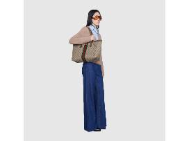 A classic combination of the House's most defining codes-the GG motif and Web stripe-the world of Ophidia continues to evolve, incorporating new shapes and silhouettes each season. With recognizable design elements in a practical new shape, this new medium sized tote is trimmed with textured leather and topped with Double G hardware. Thanks to its long leather handles, the style can also be carried as a shoulder bag.
