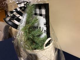 This basket includes a welcome sign, soft & warm throw, & home decor!