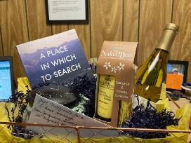 This "Relaxation" basket has a bottle of wine, gift certificate for a 60-minute massage (located in Cheyenne), a Wyoming mountain memoir, lotion and other relaxing goodies.