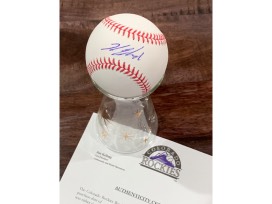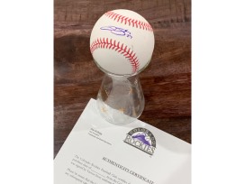 Signed by Trevor Story. An American professional baseball shortstop for the Colorado Rockies of Major League Baseball. He made his MLB debut in 2016.