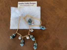 0Necklace designed by custom jewelry designer, Sandra Noble of Lake Forest. 14 carat gold chain with cloisonne pendants.