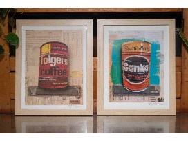 Decorate your modern coffee bar with this pair of framed prints, Sanka and Folgers by Wayne Brezinka, a Nashville award-winning artist