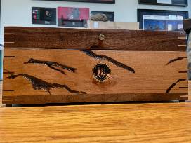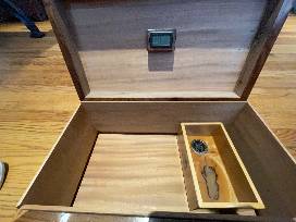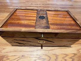 This is a gorgeous humidor hand made of exotic woods, Liberty Timbers.