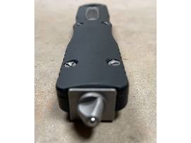 The Microtech Dirac Delta Automatic knife. The Dirac is our first double-action knife with a cover firing slider. We designed an updated ergonomic chassis with curved lines similar to the H.A.L.O. for a slightly different feel compared to our other handles. We researched this particular O.T.F. design and applied our signature ultra-high tolerance Microtech features such as proprietary hardware, innovative internal mechanism, and glass breaker. With an overall length of 7.25 inches, the Dirac is just right for an everyday knife.