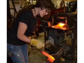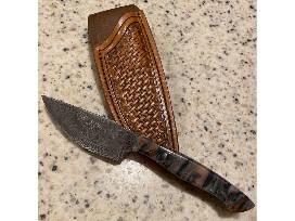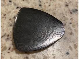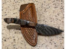 Audra Draper, the first female master blacksmith in the world. She created this masterpiece American Flag Damascus, 4" Blade. Second item is a hand made Damascus Belt Buckle.