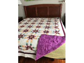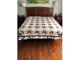 This 85" by 97" queen size quilt, designed by Timeless Treasures, was paper-pieced. It was designed with multiple colors of cotton batiks, with an Applique floral design added to the border.