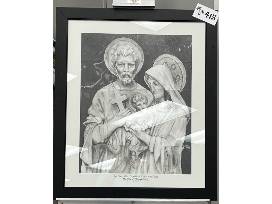 High school artists in Mrs. Alison Stone and Mrs. Grimald's Drawing & Painting and Studio Art classes created this meditative graphite mosaic inspired by Sean McCabe's photo of "The Holy Family" sculpture on campus. This work exemplifies each student's expressive individuality while emphasizing the unity created when they work together for a common goal. Each student drew and shaded one of the 4"x 4" square tiles. Each piece is an essential part of the whole work, just as each student is an invaluable member of the class, school, society, and world.