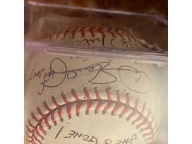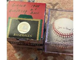 Collector's item baseball signed by Kirk Gibson & Dennis Eckersley commemorating the Vin Scully call of Kirk's legendary walk-off home run off of Eckersley during Game 1 of the 1988 World Series. LA Dodgers vs Oakland A's