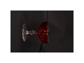 Beautiful deep red jewel tone goblets with clear stems, and matching smaller glasses suitable for wine, punch or sherbet. Set of sixteen total (8 of each size).