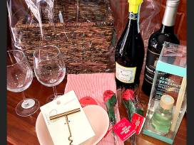Enjoy a cozy evening with your favorite person with this assortment of wine and sparkling wine, chocolate roses, wine glasses, corkscrew, heart-shaped candy dish and aromatherapy reed diffusor.