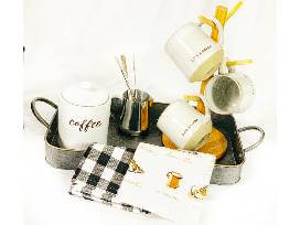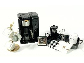 Enjoy the aroma of fresh ground coffee beans brewing right in your own kitchen! Set this cute little coffee bar up and you are ready to brew!