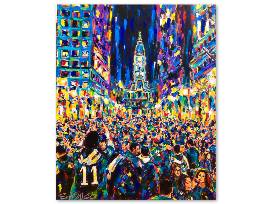 Colorful depiction of Broad Street after the Eagles Super Bowl Victory.