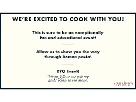 Join Chef Victor and Chef Angela for an exclusive, private, hands-on pasta and cooking class!