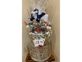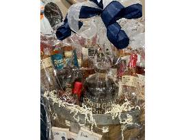 A decorative rustic large basket with a display of drinks for you to savor!