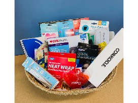 Stay healthy and fit with this basket full of personal care items. Basket include a 3 pack of cooling headache pads, air-activated heat wrap, pack of 100 Band-aids, 2 digital thermometers, 2 packages of lemon frost Ricola anesthetic drops, Softfit Series 600 blood pressure monitor, a coupon for a free half gallon of Blue Bell ice cream, notebook, face mask, gaiter, Corkcicle 16 oz water bottle, toothbrush, reusable ice pack, 3 pack of Carmex medicated lip balm, Wet Ones hand and face wipes, 5fl oz Mary Kay hand sanitizer spray, 2021 calendar, Kleenex pocket tissue pack, (2)$25 Walgreens gift cards, and (2) $25 CVS gift cards.
