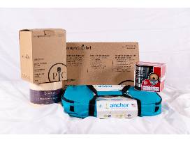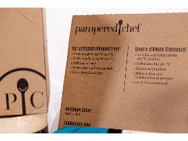 Pampered Chef rectangle stone, veggie spiralizer, anchor 4 piece bake-n-take - 9x13 glass baking dish with cover, insulated tote with hot and cold packs.