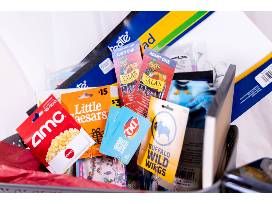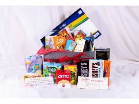 Family Fun Overload with this basket full of gift cards for Buffalo Wild Wings, Dairy Queen, Little Ceasers, AMC Movies, Sgt. Peffer's, One Dozen Eileen's Cookies, 4 Vala's Pumpkin Passes,