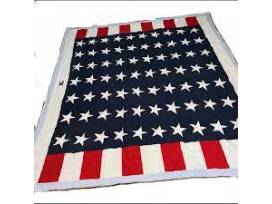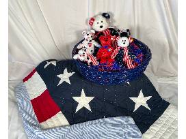 Snuggle up with this Tommy Hilfiger patriotic 63" x 86" comforter and the adorable red, white, and blue Beanie Babies in the blue basket.
