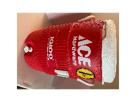 Large 5 gallon red Igloo water cooler with beverage dispenser