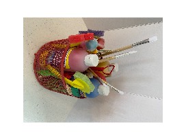 Art Caddy with assorted brushes, color pencils, crayons and more!