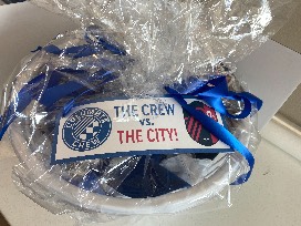 Includes: Crew hoodie adult M, Crew beanie, Crew hat, Crew waterbottle, StL City T-shirt L, City Sticker, City can coolie AND MS Soccer Professional Training Session.