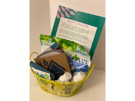 Norwex Basket Includes: Travel Envirocloth, Ultra Power Laundry Detergent, Lint Mitt, Trial Sized Oder Eliminator, Trial Size Produce Wash, Sample of Dishwasher Powder