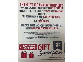 A gift subscription to Stray Dog Theatre! Package includes (2) tickets for 8 productions, including the remainder of the 2021 Limited Series, and the 2022 Season.