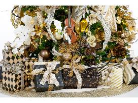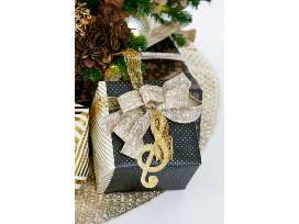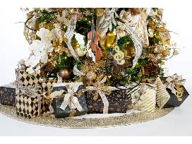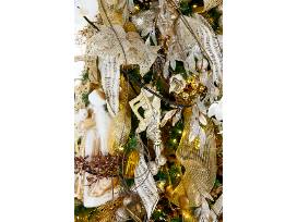 Decorated by floral designer David Navarro and Pacific Chorale Artistic Director Rob Istad, the elegant and glamorous tree design inspires a sense of warm Christmas glow. Layered with hues of gold, bronze and hints of chocolate brown sprinkled with whimsical and musical elements, the tree embodies the spirit and community of the Pacific Chorale family.