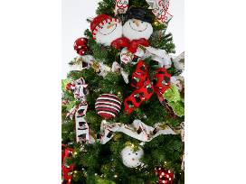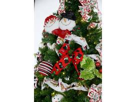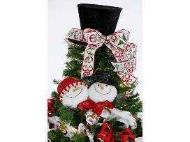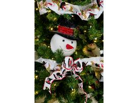 Because the arts can open the doors to creativity and wonderment, we chose "Believe in the Magic" as our theme, and the whimsy of friendly snowmen as our primary motif. The tree is dressed in the white of snow, the red of his scarf and the black of his magical top hat.