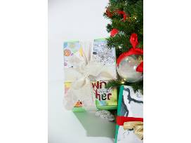 We completed our tree with print clippings of VAALA's "food for the soul" art programs and events. Since its establishment in 1991, VAALA has organized hundreds of delectable community events, including the annual Viet Film Fest, Autumn Moon Fest, Gallery Beyond Walls (Project Foto, Illuminated Recipes), art exhibitions such as F.O.B.: A Multi-Art Show, F.O.B.II: Art Speaks, TransformART, Generations: 40 Hues Between Black and White, and numerous literary events. The beautiful children's books at the base of the tree were featured in our inaugural Viet Book Fest (held recently in October) and are included with our Holiday Tree as presents, along with gift cards to popular local restaurants, so you can directly experience and savor the numerous fruits of Vietnamese culture.