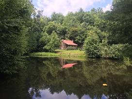 A great place to get away from it all! Enjoy the tranquility of this rustic cabin retreat and recreational property in the Blue Mountains of Virginia! Amenities include 2 fishing ponds, fresh spring water, 2 bedrooms (1 queen bed and 2 twins), 1 full bath, kitchenette with refrigerator. A charcoal grill is provided along with fishing rods and supplies. Set on 33 acres surrounded by wooded land, you'll enjoy exploring the trails and nature of this property!