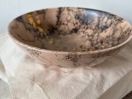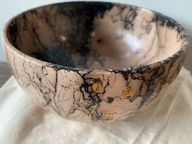 Sandra Moore is drawn to the intimate and painterly approach of horsehair reduction. The process demands acute awareness of specific moments in time. The temperature and color of the hot clay dictates the moment when the painting of line and direction of smoke is embedded into the burnished layers of the clay resulting in translucent planes of line and smoke. The piece tells the story of each of those moments.