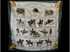 Authentic, vintage Hermes Silk Scarf will elevate any wardrobe and will be a classic piece to keep in your collection. The bold Cadre Noir Hermes Silk Scarf was designed by Colonel G. Margot and first issued in 1963. The Cadre Noir scarf pays homage to the prestigious and elite teachers of the French National Riding School, the École Nationale d'Équitation at Saumur, founded in 1828 and still in existence today.