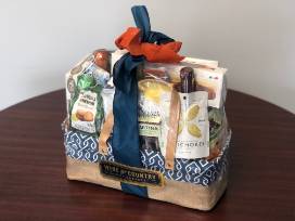 Three bottles of wine are just the tip of the iceberg with this Wine Country basket. You'll be thrilled by the Italian crackers, oils, olives, artichokes, dip mix, cookies, and chocolate--yum!