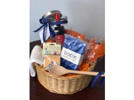 Add a tropical touch to your wine night with this sangria basket! Included are a bottle of red wine, a fresh assortment of fruits, a glass carafe, and a wooden spoon to mix it all together.