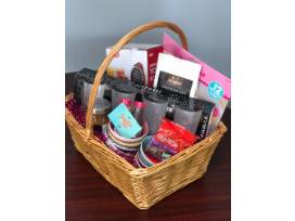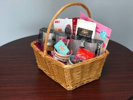 Eight ceramic ice cream dishes, ice cream toppers, and a Sebastian Joe's gift certificate are just the base of this gift basket. Make your own waffle cones with the mini waffle maker and waffle mix included as well!