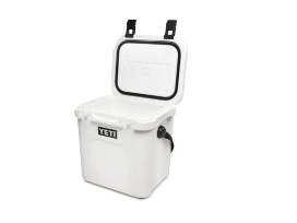 The Roadie 24 Hard Cooler is a fresh take on a tried-and-true YETI favorite. It's 10% lighter weight, holds 20% more, and even performs 30% better thermally than its legendary predecessor. Plus, we built it tall enough to accommodate critical bottles of wine but slim enough to squeeze behind the driver's or passenger's seat of a car. Now that's what we call a road trip buddy. And hey, this guy is compatible with our Tie-Down kit, which means you can also transport this cooler on your boat, truck bed, or trailer -no problem.