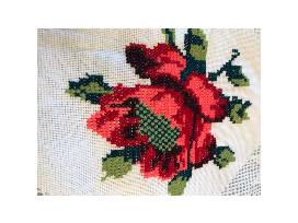 Hand embroidered table mantel with red roses. Beautifully hand crafted.