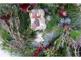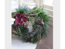 Handmade Live Greenery Holiday Wreath, Poinsettia Detail