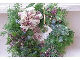 Handmade Live Greenery Holiday Wreath, Ribbon Detail