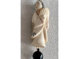 1Netsuke Scrimshaw Geisha with Onyx beads.