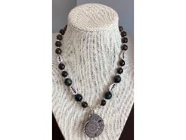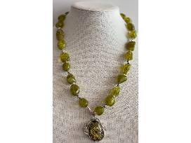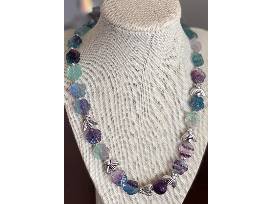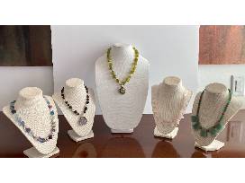 15 necklaces: Fluorite, ammonite, green amber, pink quartz, and jade
