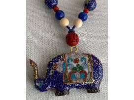 1Old cloisonné style elephant pendent with cinnabar and lapis beads.