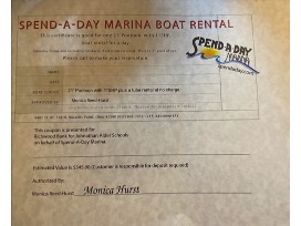 - Spend A Day Marina Boat rental certificate good for one 21' Pontoon with 115hp boat rental for a day at Indian Lake (Mon-Fri and excluding holidays).