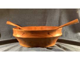 Beautiful wooden handcrafted salad bowl and matching serving pieces. Serves 10 - 12. The bowl and servers are made from Wild Cherry.