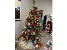 This tree will brighten anyone's day with smiles! The Teacher's Tree has approximately 150 varying red and gold ornaments, a beige with gold trim tree skirt that adjusts from 60 inches to 66 inches. Three plush snow people who are ready to go skiing, a holiday moose with LED lights, 2 standing plush gnomes in winter themed clothes, two (3) packs of gifts boxes, 8 to 12 large red and gold ornaments, a 9 foot pre-lit garland with dual LED lights, a 32 inch wreath w/dual LED lights, and a 7 ½ Foot Rocky Mountain Fir tree with dual LED lights, remote control, and storage bag.