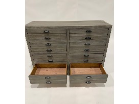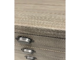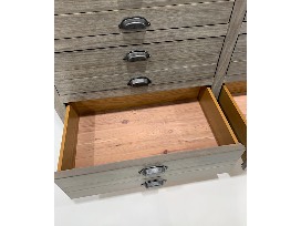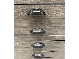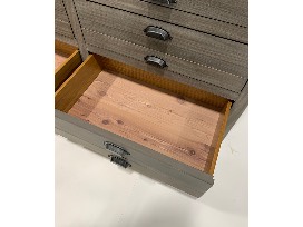 Features: scoop design hardware; cedar bottom in bottom drawers