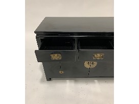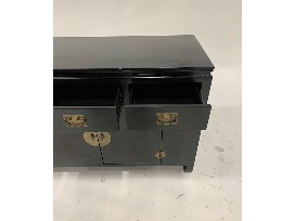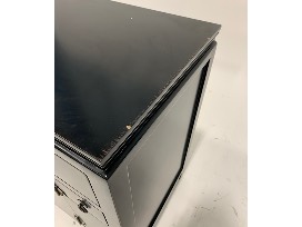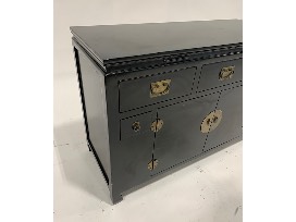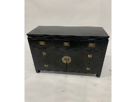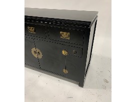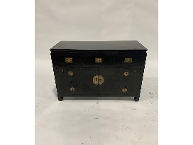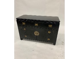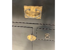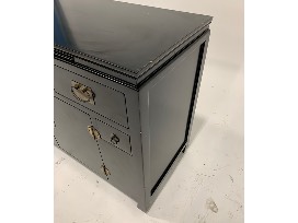 Features: 3 medium drawers, 2 small drawers, 1 set of double doors; brass hardware pulls