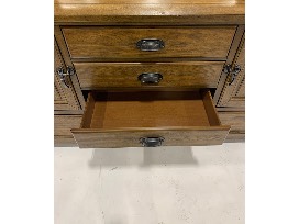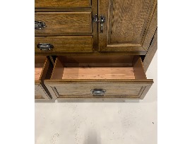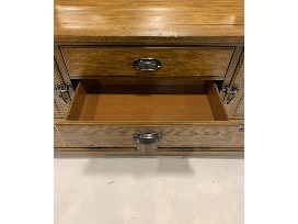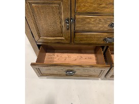 Features: felt-lined top drawer, cedar-lined bottom drawers, 2-latch hardware doors with adjustable shelves, French and English dovetail drawer construction